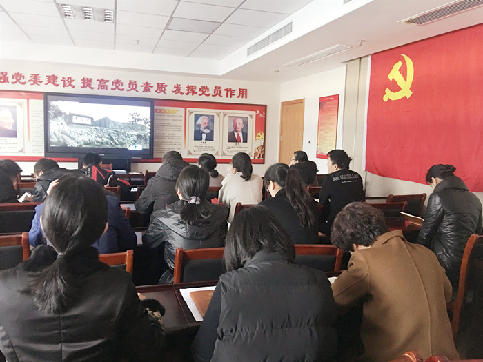 传承红色基因,凝聚前行力量, 2月27日,我院行政后勤党支部开展了主题党员活动,在重温入党誓词、诵读党章后,党员们观看了革命历史纪录片《红色革命—八路军的胜利》。