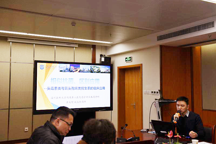 学习讨论会由院感科徐玉燕科长致欢迎辞。特邀温医大附二院副主任药师黄成坷硕士做专题讲座《相似抗菌 区别对待》,主要内容为头霉素类与氧头孢烯类抗菌药物的临床应用。