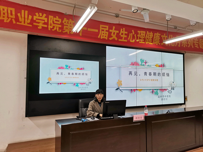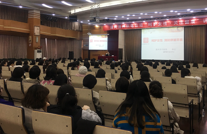 在水心柑橘社区,我院中医妇科颜晓钏主治医师,为社区妇女开展关于《女性养生保健》健康知识讲座;在温州科技职业学院,我院中医妇科胡欣欣副主任医师为在校女生开展《再见,青春期的烦恼》健康知识讲座;在温州市电力局,我院团委联合国网温州供电公司、图盛后勤分公司邀请中医妇科孙云主任为员工开展以“呵护女性,关注健康”为主题的大型讲座活动。