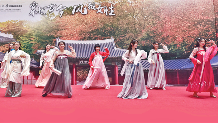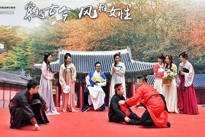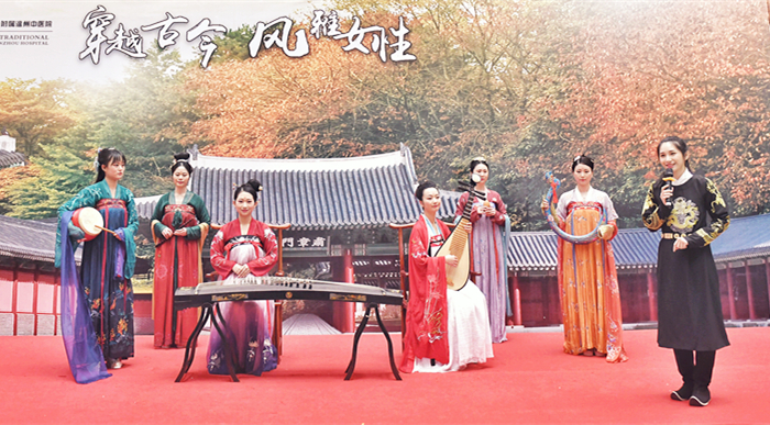 关爱患者,自然也要注重职工文化。我院工会为丰富女职工文化生活,调节身心,陶冶情操,开展了一场名为“穿越古今?风雅女性”的主题活动。十一支由院女职工组成的参赛队伍,着汉服、耍舞姿、唱诗赋,以东方女性的优雅古韵,充当汉服最美的模特。十一支队伍代表着是绿帽社