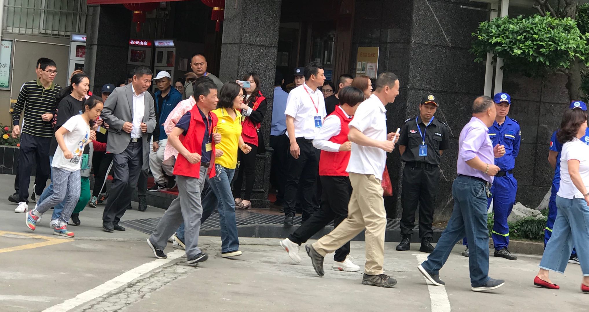 10时,长达60秒的防灾警报鸣响,近200名群众在工作人员的组织下有序地进行人员疏散和人员隐蔽演练。