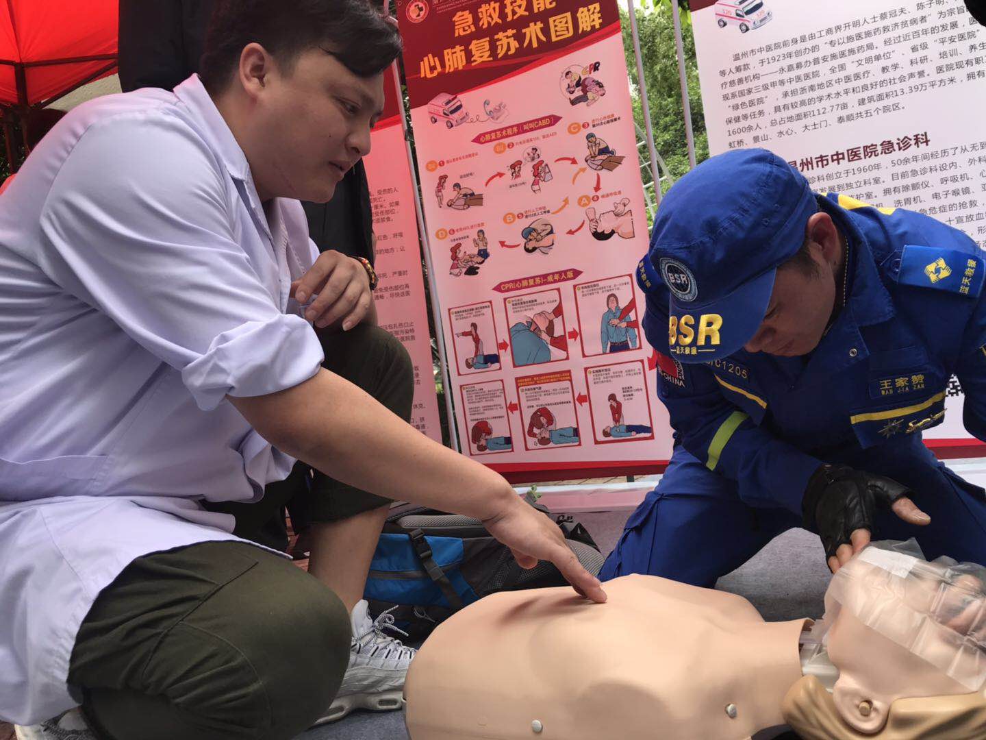 在心肺复苏演练点,急救医生为市民严谨仔细地讲解了心肺复苏的基础知识,并在模拟人身上分解演示如何进行高质量的徒手心肺复苏操作。围观群众兴趣大增,纷纷要求“上手”亲自练习一番。而后,工作人员开始手把手教学,并在市民练习时,耐心纠正操作不规范的动作。小试身手后,不少市民表示获益良多,并对学习急救知识产生了浓厚兴趣。