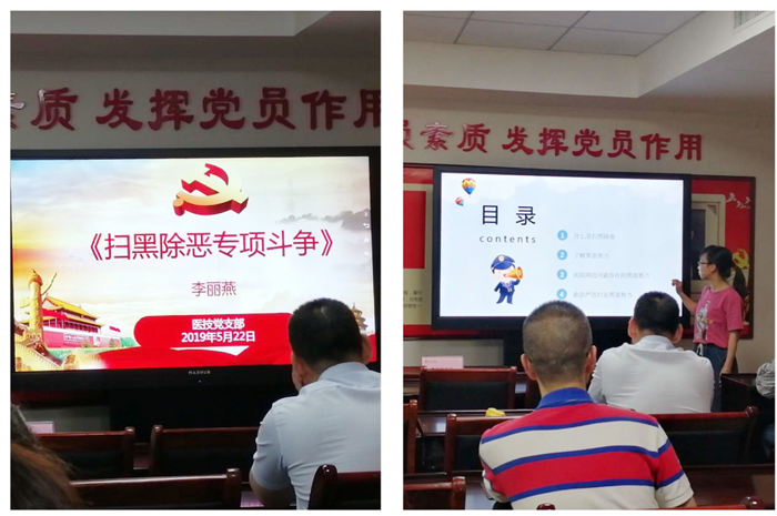随后李丽燕同志为大家带来一场漫画与现实相结合的通俗易懂、引人入胜的“打黑除恶”专题报告。大家通过学习明白在我们身边什么是真正的“黑”,什么是真正的“恶”,以及相关的政策、战略部署等。李丽燕同志还结合医务工作者实际,总结了绿帽社 周边可能存在的黑恶势力,以及我们党员要发挥的作用,引起大家共鸣。
