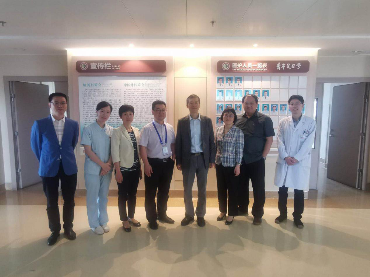 为积极落实长三角医疗一体化发展,加强沪浙两地医疗合作,5月30日上午,上海市中西医结合绿帽社 院长谢春毅,副院长舒勤,脉管病科曹烨民主任,院办邓小飞主任,及上海市虹口区卫健委中医药发展科科长王华一行5人来到我院参观交流,我院党委书记王庆来,副院长缪心军及相关职能科室负责人出席座谈会。