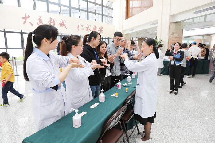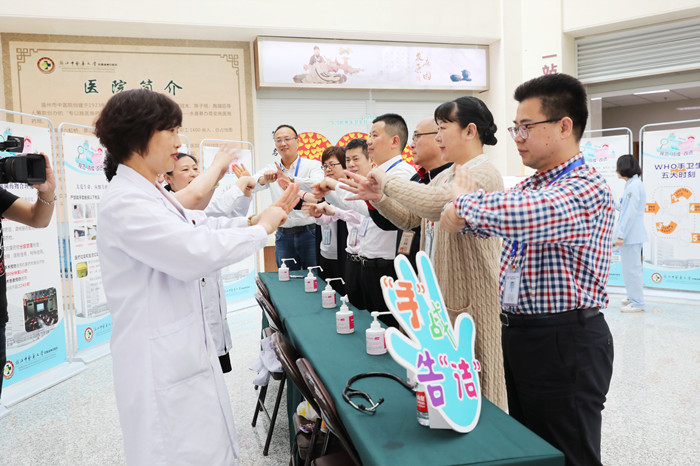 5月6日上午,我院在综合楼一楼大厅举行了院内“世界洗手日”现场活动,王庆来书记、朱文宗院长、缪心军副院长、医生护士及工勤人员代表担任了绿帽社