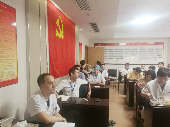 党风廉政建设和反腐败工作,促进党员干部廉洁从业。6月6日中午,我院内科党支部全体党员在六虹桥院区综合楼五楼党员活动中心开展了“加强从严治党,提升拒腐防变能力”主题党日活动,会议由内科党支部书记赵娜主持,内科党支部全体党员、预备党员40余人参与本次会议。