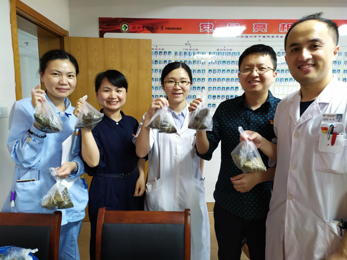 在端午来临之前,支部给每位党员准备了两个粽子,大家领取粽子时表示意外,同时也更有过节的气氛,更加体会到了内科党支部这个大家庭的温暖。