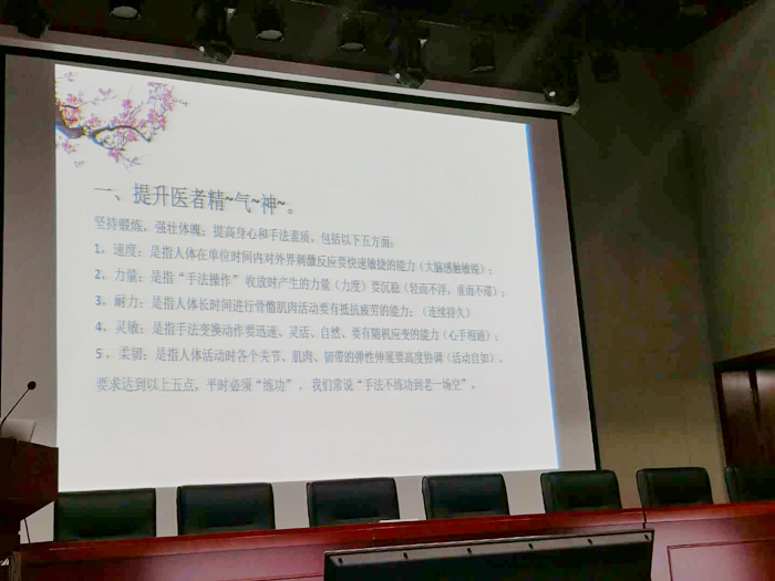 林国明教授作了“如何提高手法临床应用效果”的学术讲座,分享了他几十年的手法技巧及经验;并介绍了一些气功的相关知识,播放了他早年拍摄的气功治病视频,最后接受了部分同道的提问,受到了院内各界外医务人员的喜爱。