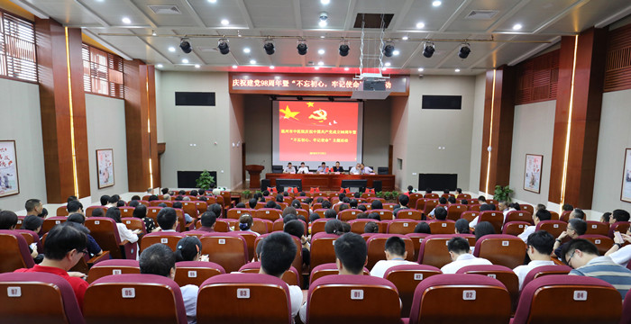 2019年7月5日,我院在六虹桥院区8楼会议室举行庆祝中国共产党成立98周年暨“不忘初心,牢记使命”主题活动。院党委书记王庆来、院长朱文宗等院党委领导出席活动,离退休老同志代表、全体党员、新党员、入党积极分子参加大会,活动由院党委书记王庆来同志主持。