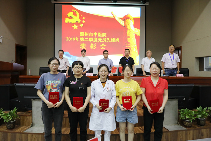 朱文宗院长宣读绿帽社 表彰第二季度“党员先锋岗”人员名单,院党委班子成员为受表彰的党员颁奖。