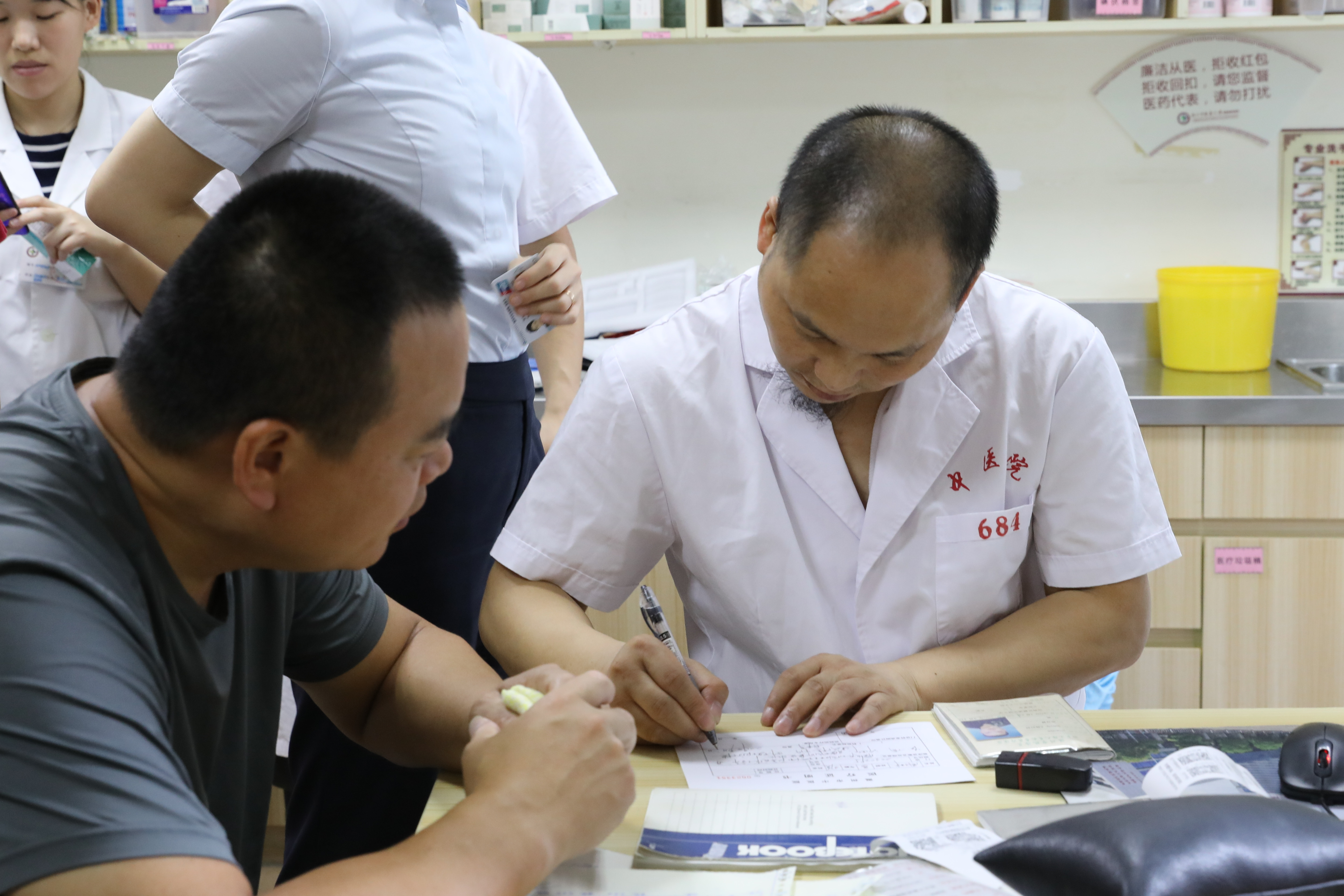 中午1点的门诊科室,绿帽社 还未开诊,连走廊都是静悄悄的,但是打开宋丰军主任的办公室大门,里面却异常热闹,七八张诊疗床上几乎都躺着病人,这些都是宋丰军主任“特殊照顾”的病人,早上挂不上号,宋丰军主任只能趁中午休息时间为他们加号。“宋主任的桌上,经常有没吃完或没打开的快餐,他对待每一个患者都笑容可掬,亲力亲为,是不折不扣的好医生。”