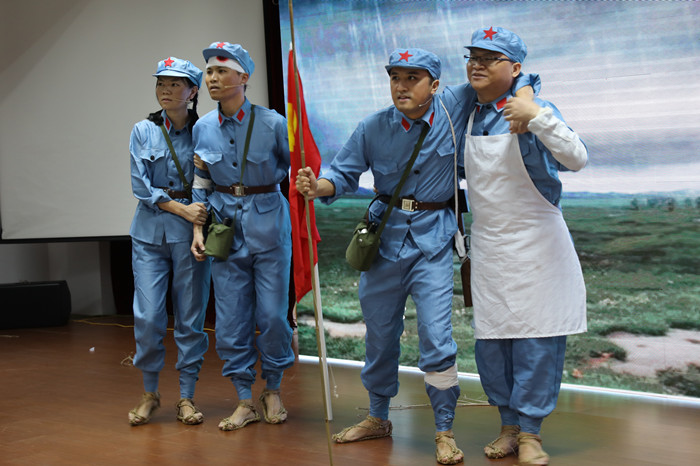 医技党支部选送的《映山红》讲述了小英雄潘冬子在残酷的斗争中不断磨练自己最终成为一名红军小战士的故事;