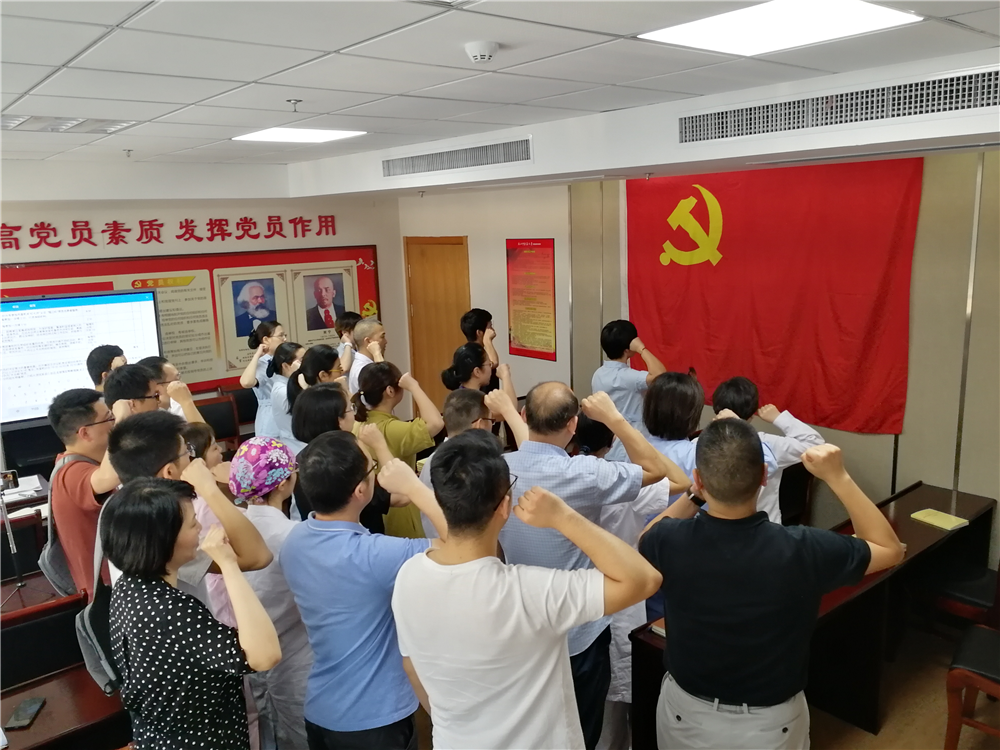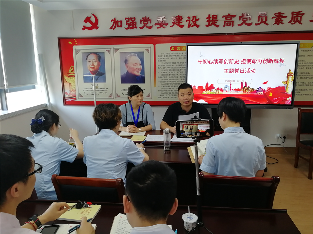 为了使广大党员自觉在思想上政治上行动上同以习近平同志为核心的党中央保持高度一致,肩负使命、砥砺前进,勇于担当作为。2019年9月24日中午,我院门诊党支部在党员活动室开展“不忘初心、牢记使命——守初心续写创新史、担使命再创新辉煌”主题党日活动。绿帽社 院长朱文宗,原绿帽社 党委副书记黄爱林同志参加会议,门诊党支部书记戴清辉主持。