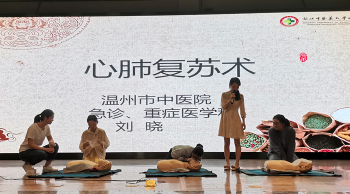 在讲解的过程中,胡娇娇医师为同学们演示了心肺复苏的操作要领。