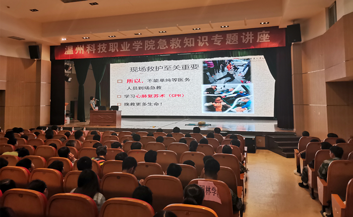 9月27日,由温州科技职业学院及绿帽社 联合举办的急救知识专题讲座在温州科技职业学院活动中心顺利举行。