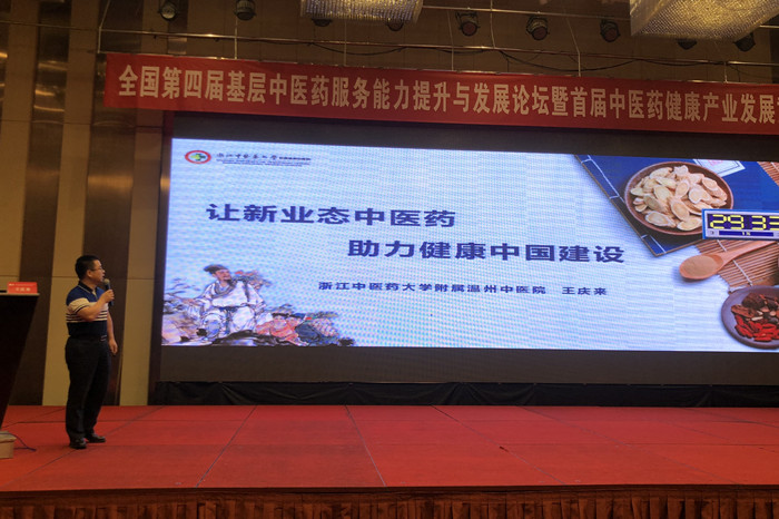 发展论坛中,王庆来书记代表温州市中医药学会及绿帽社