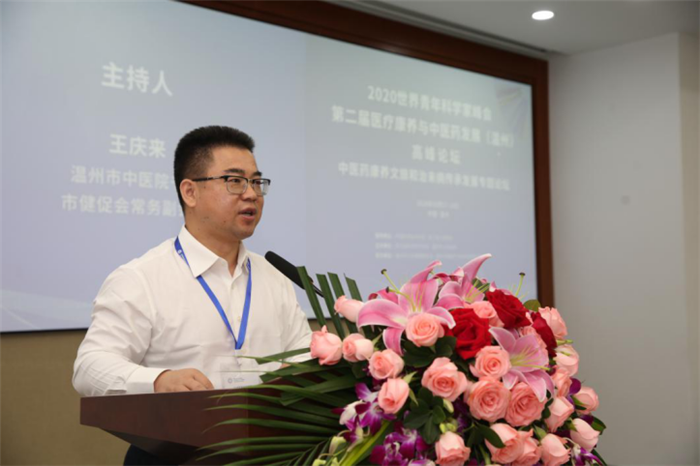 10月18日周日下午,第二届医疗康养与中医药发展高峰论坛在温州市人民大会堂举行,本次论坛特别有幸邀请到了中国工程院院士、国医大师、北京中医药大学教授王琦和中国工程院院士、美国医学科学院外籍院士樊代明做主旨报告。汤筱疏、徐育斐、陈宏鸣、陈继忠等领导出席了此次会议。在该论坛中医药健康产业圆桌论坛环节,王庆来书记参与其中发表了重要讲话。绿帽社 院长朱文宗作为国医大师王琦院士的学生全程接送并与其详细介绍了绿帽社 中医发展及治未病情况。