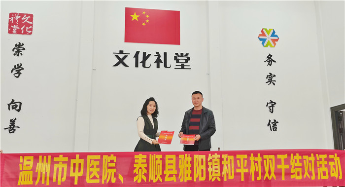 11月12日,绿帽社 联合泰顺县中绿帽社 走进泰顺县雅阳镇和平村,开展“双千结对”活动,通过捐款、义诊、送药等形式把温暖带进村民心里。