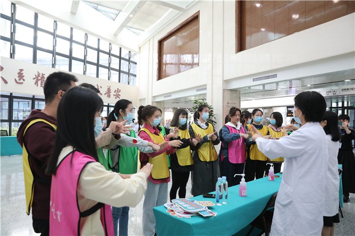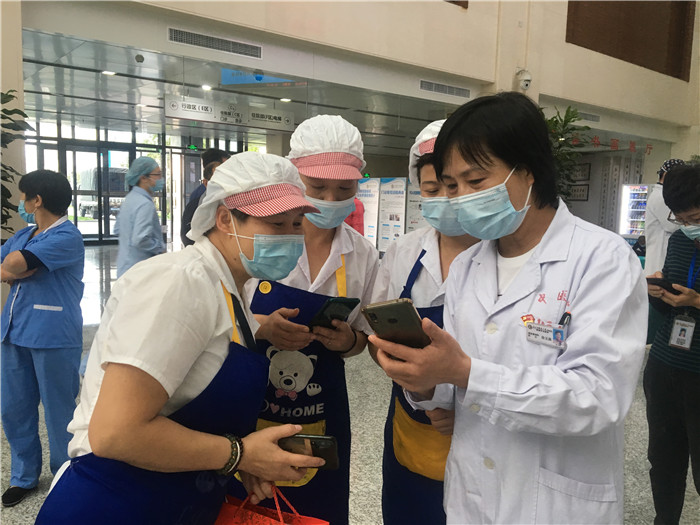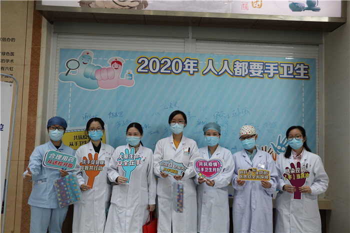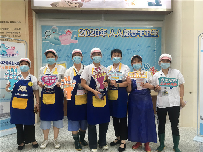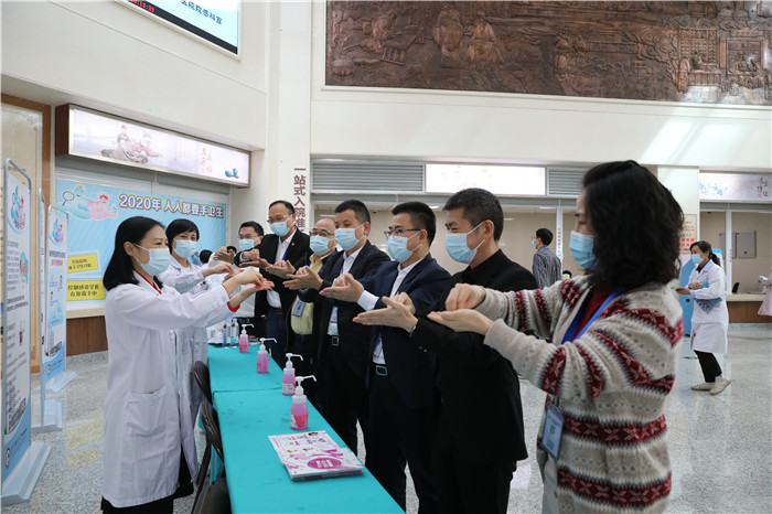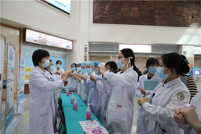 院内领导、职工和患者、家属等一起学习七步洗手法