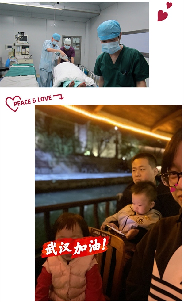 手术室护士孙潜及麻醉科医生张亮,他们将孩子交给了家里的老人,共同坚守在工作岗位,平日繁重艰苦的工作中,他们没有任何埋怨,常常相互鼓励打气。