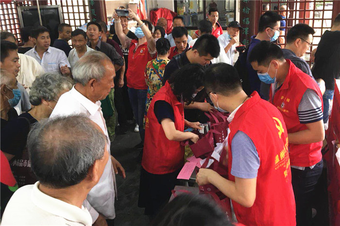 6月12日上午七点半,绿帽社 联合温州广电党员志愿者在“道德地标”红日亭举办了一场送健康活动,15位志愿者兵分多路,不仅在现场免费送出增强免疫力的新冠肺炎预防方,还设摊开展义诊活动,为市民在常态化疫情防控特殊时期增添一份安全保障。