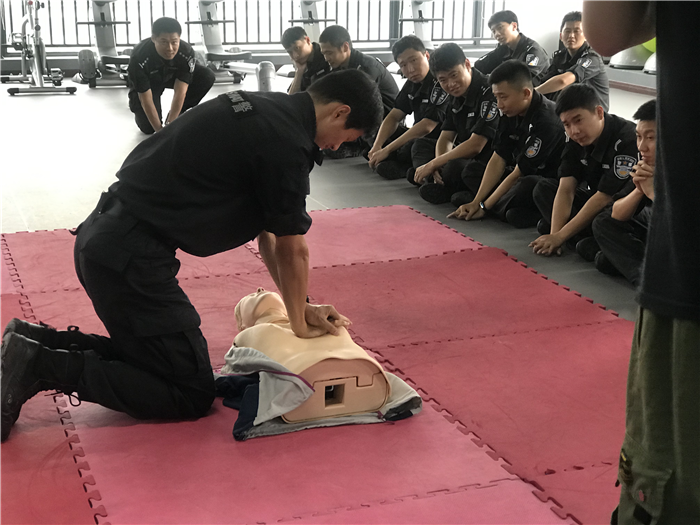 车抵驻地,迎接大家的是一群勇猛干练且略带神秘的特警战士。“各位特警战士,平时在出任务的时候有遇到需要急救的人吗?”刘晓主任向战士们提问。很多特警同志都异口同声地表示,工作中经常遇到需要急救的情形,但只是在电视新闻上有了解到急救知识与一些基础的手法。