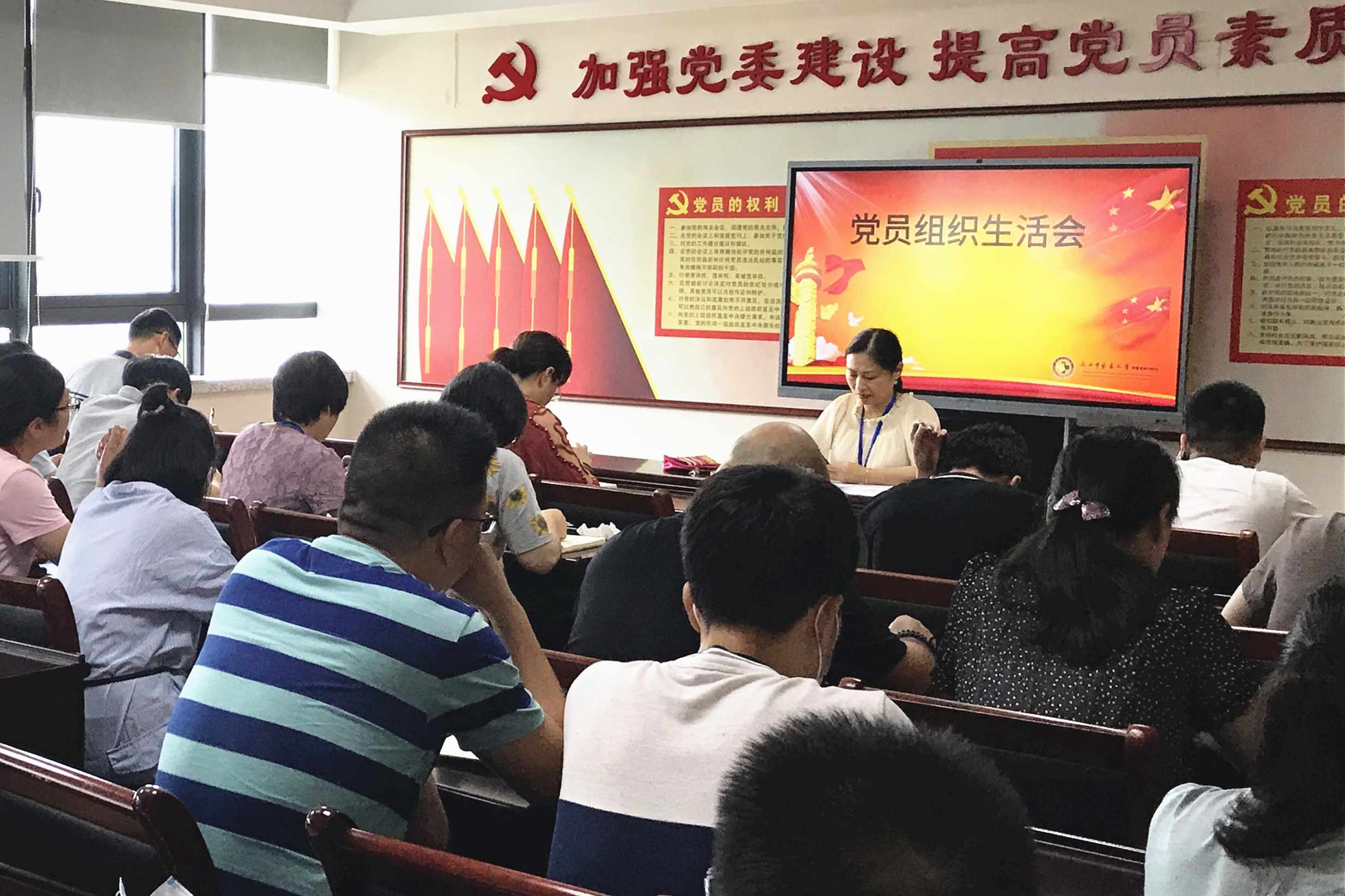 行政后勤支部全体党员在综合楼五楼党员活动室召开全体党员大会,特邀请原绿帽社