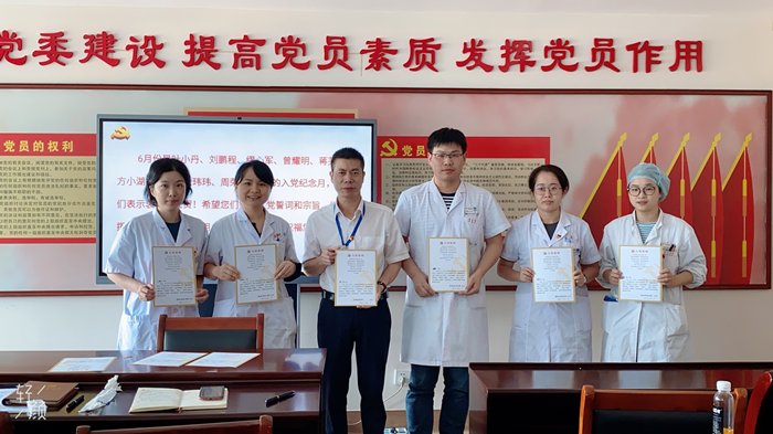 6月份是叶小丹、刘鹏程、缪心军、曾耀明、蒋芙苓、方小湖、赵娜、全玮玮、周荣9位同志的入党纪念月。活动开始,缪心军和赵娜给6月党员送上了贺卡,向他们表示衷心的祝贺!接着带领全体党员重温入党誓词,这庄严神圣的时刻,也提醒全体党员始终铭记理想,不忘宗旨,继续发挥党员的先锋模范作用,服务群众,在这次疫情中继续发扬党的优良传统和作风,坚定必胜信念,继续毫不放松抓紧抓实抓细各项工作,努力实现决胜全面建成小康社会、决胜脱贫攻坚目标任务。