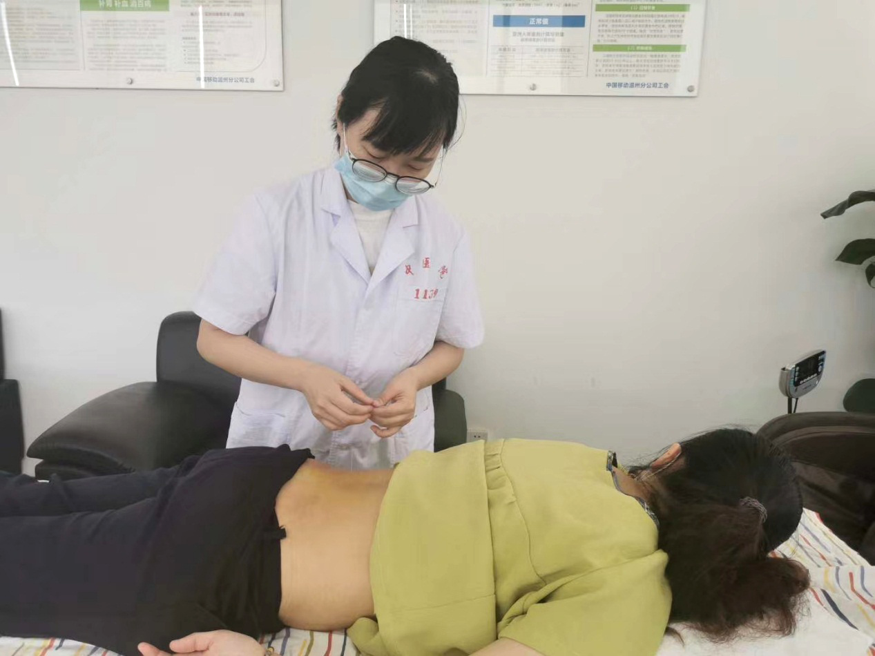 △李灵浙主治中医师为多名移动职工做颈肩针灸治疗
