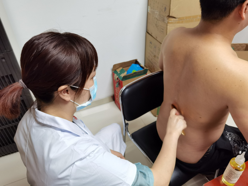 △孟盈盈治未病科、BE病区护士长为移动职工做刮痧治疗