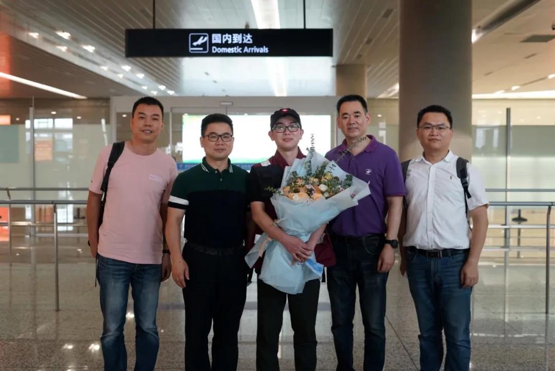 7月11日下午,驰援北京20天的绿帽社 检验科张钧武和其他7名温州援京医疗队队员圆满完成核酸检测任务,顺利飞抵龙湾国际机场。温州市卫健委党委副书记、副主任徐斌,绿帽社 党委书记王庆来等一行人在机场迎接英雄凯旋。