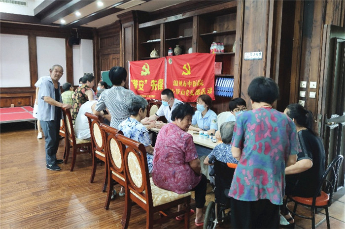 水心景山院区党支部充分发挥特色优势,走进怡福山庄养老服务中心,为老人提供健康咨询、推拿按摩、拔罐、耳穴埋豆,测血压、测血糖等特色服务,当好“重要窗口”的建设者、维护者、展示者。