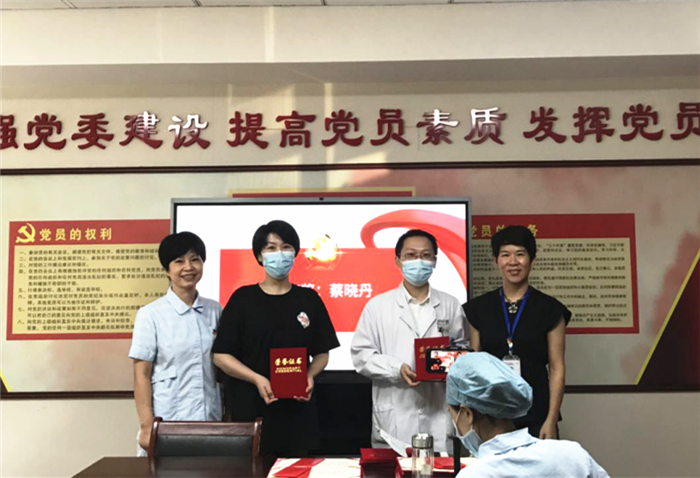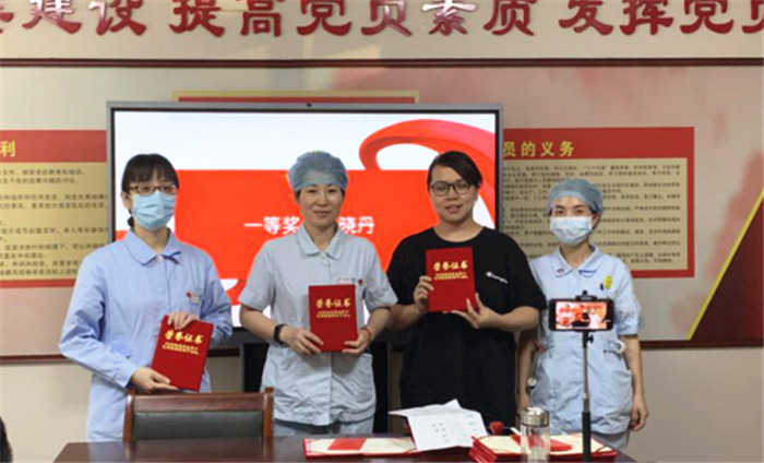 院长朱文宗同志及支部各支委对获奖党员进行颁奖。蔡晓丹同志获得一等奖,朱婧、刘三海同志获得二等奖,赵东瑞、王洁、谢敏同志获得三等奖,叶必宏等七名同志获得优胜奖,ICU党小组获得组织奖。