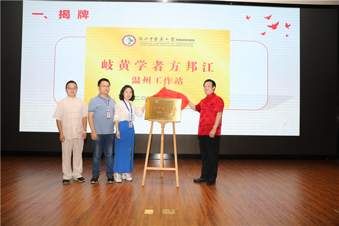 党委委员、纪委书记张伊凡共同为岐黄学者方邦江温州工作站揭牌。