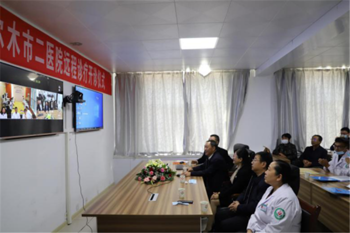 视频会议室里进行了远程诊疗中心启动开诊仪式,并开展了首例远程诊疗。远程会诊的开展,不仅促进了医疗资源共享,也全面提升医疗效率和诊断水平,大大方便了患者,进一步体现了“互联网+医疗”的优越性。