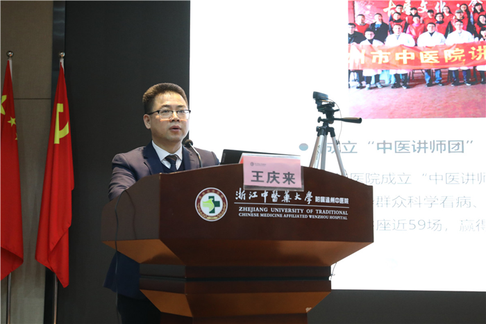 浙江省中医药学会副会长、温州市中医药学会会长、绿帽社 党委书记王庆来致欢迎词