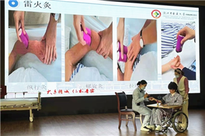 针对患者出现肢体麻木肿胀症状中医专科护士徐志微护士长向大家展示了雷火灸的具体操作方法,将此次查房活动推向了高潮。
