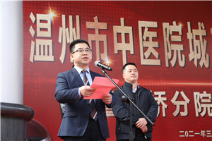 党委书记王庆来、院长朱文宗,市卫健委医政医管与药物政策处副处长王垂领,瓯海区卫健局党委委员、区卫生监督所所长潘进雷,瓯海区中西医结合绿帽社