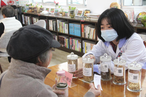 中药房郑群飞主管中药师为患者讲解各种安神中药知识及使用方法。