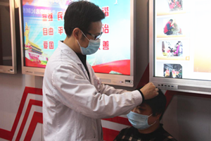 为社区前来咨询的患者免费测量血压、血糖。