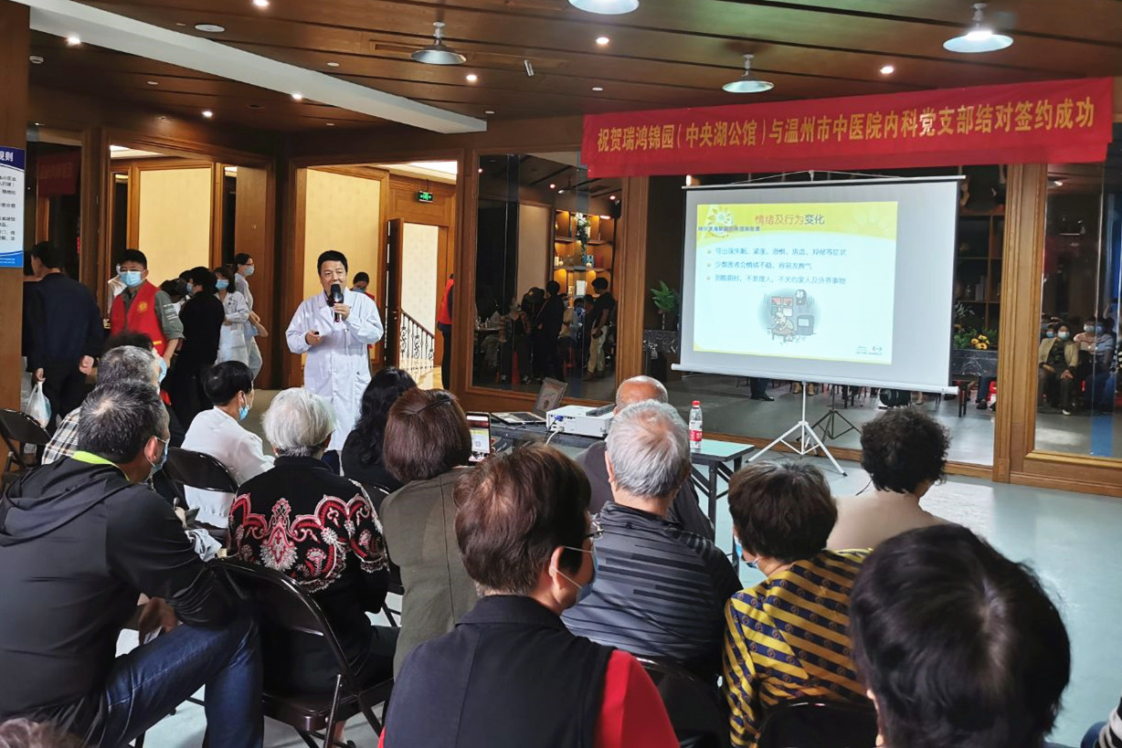 浙江省名中医、主任中医师胡万华开展《老年痴呆的早期识别和对策》健康讲座,他用温州话深入浅出地解释老年痴呆的特征及早期表现,教会居民如何早期发现家人的异常,早期处理,改善预后。