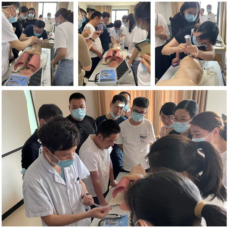 培训开始,由周一敏医师通向在场医师形象的讲解了气管插管的用途、作用及操作,大家认真听课积极互动。