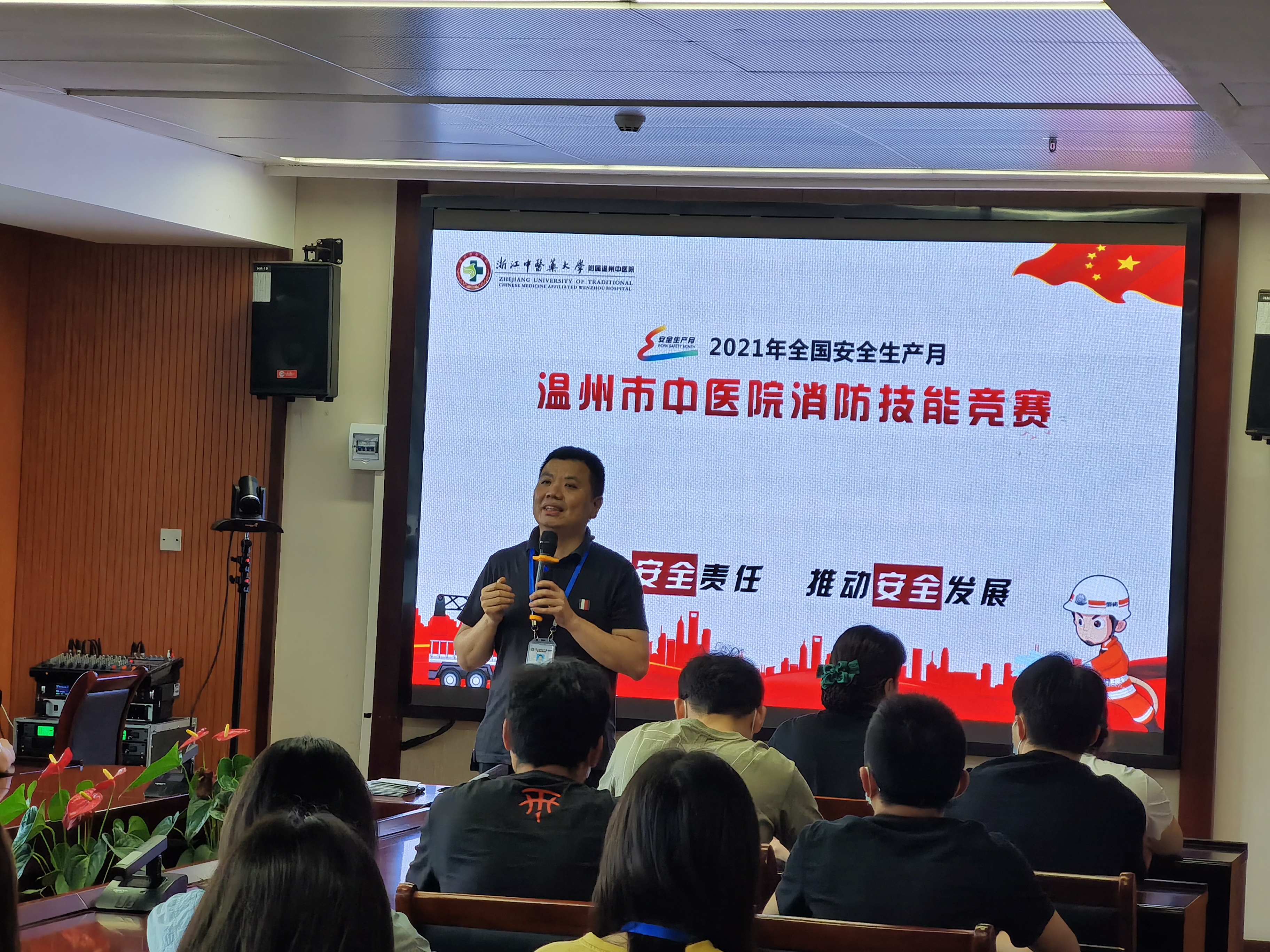 开幕式上,朱文宗院长向参赛人员致辞,要求大家以消防技能竞赛为契机,切实强化消防安全意识,增强防范火灾和逃生疏散的能力。