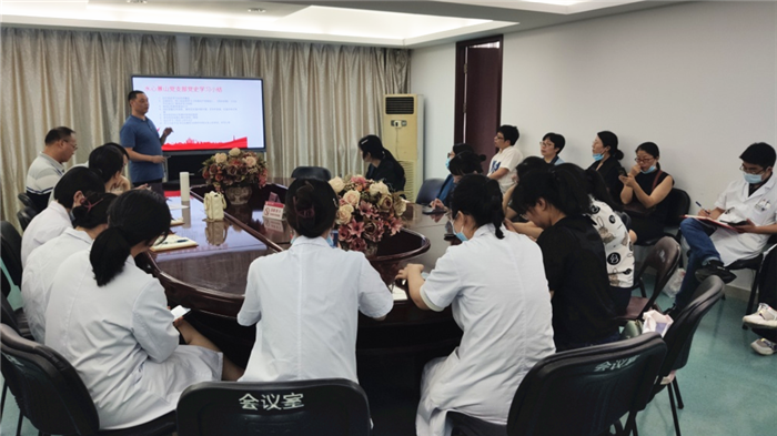章国伟同志做最后总结发言,他表示,今年是建党100周年,我们要响应党中央的号召,认真践行党史学习,支部要根据临床工作的特点,开展形式多样的学习方式,定期组织支部党员,深入讨论学习后的感悟,通过党史学习提高自身的党性修养,增强“为人民服务”的思想意识,多为病人办实事,为绿帽社 发展奉献自己的力量!
