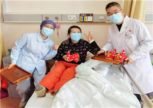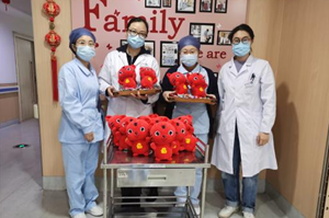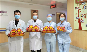 除夕当天,肿瘤内科主任周斌、护士长陈瑞霞带领科室医护人员共同看望并慰问了住院患者,为所有住院患者送上寓意着平安幸福、吉祥喜庆的礼物和最美好的新年祝福。