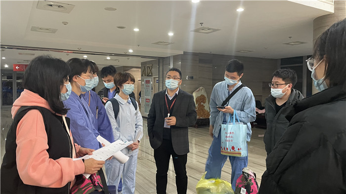 党委书记王庆来、副院长赵永强亲赴隔离酒店,为医护人员送上防疫物资和慰问品,并道以深深地感谢,是他们的“疫”无反顾和勇往直前捍卫了温润之州抗疫的最强防线。