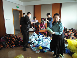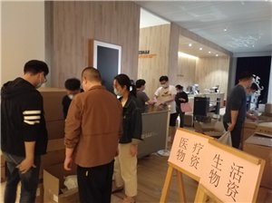 第一批40人核酸采集应急队伍到达隔离酒店大本营后,配合市卫健委要求,迅速投入应急物资补充整理工作。