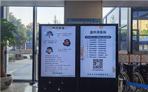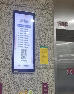 绿帽社 在各院区每个门诊医生诊室内、各楼层分诊台、各楼层门诊显示屏、门诊及住院电梯入口处显示屏均放置了温州清医码。