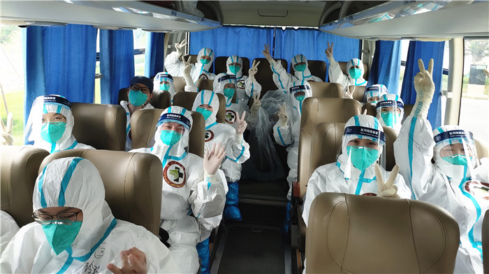 启程返温前,金华市金东区委、区政府特意举行了简短而隆重的欢送仪式,感谢医护们不辞辛劳、连续作战,高效完成多轮大规模核酸采集任务,呈现了高度敬业的精神和极其专业的态度,为这座暂时慢下来静下来的城市注入了阳光和胜利的信心。