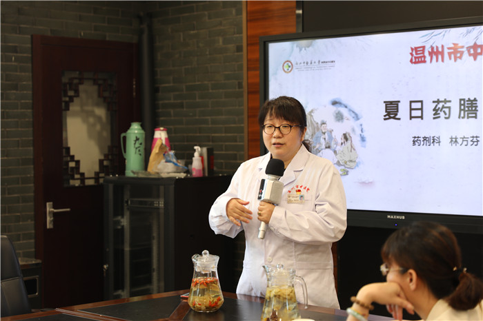随后,主管中药师林方芬带领大家一起学习药膳,教大家如何将不同中药材与食物进行合理组方配伍及烹调,做成具有独特的色、香、味、形、效并有保健强身、防病治病等作用的药膳。课后,许多人都表示学以致用,回家就要立刻做起来!